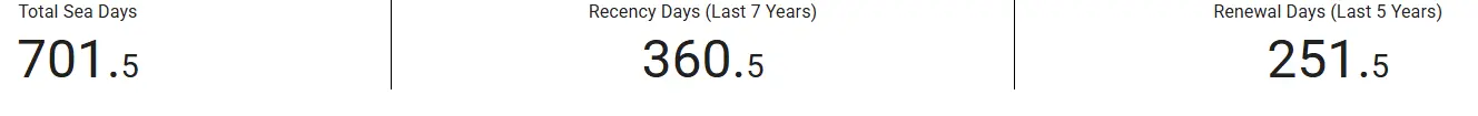 You want to keep track of different numbers depending on what you are doing with your license. If this is your first USCG License Total Days and Recency Days are what you want. If you are renewing and upgrading your USCG license you want to pay attention to all three. If you are just renewing what you have, Renewal Days is your key to success.